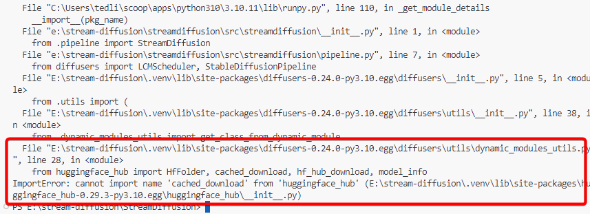 近期在研究 StreamDiffusion,發現在 Python 3.10 中執行時會出現「ImportError: cannot import name ‘cached_download’ from …