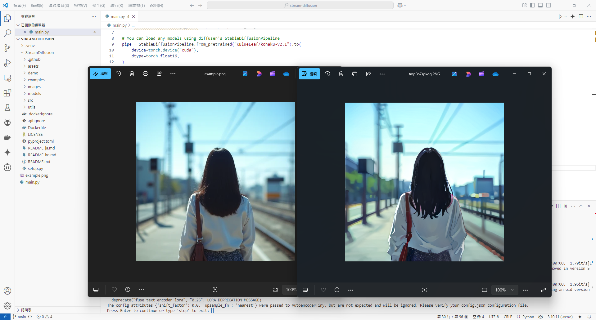 StreamDiffusion 是一個讓 StableDiffusion 的生圖模型能快速生成的工具,簡單來說就是犧牲品質換取更快的更新率。這個工具的環境建置流程稍微複雜,本文將說明如何在 Windows 11 的桌上型電腦上安裝。