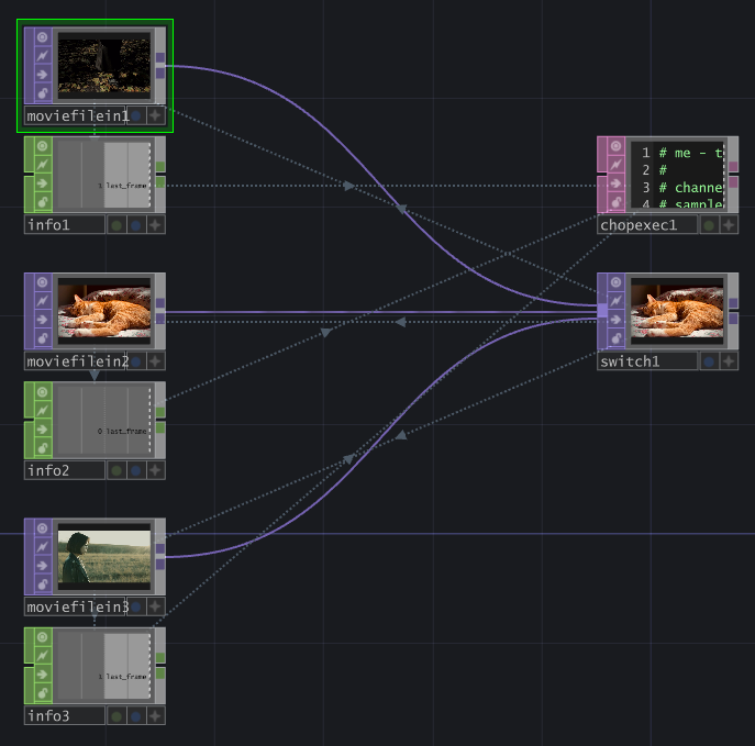 收到學長來信,有一需求是要在 TouchDesigner 中,讓 3 部影片分別在播放結束時會切換到下一部,並且在 3 部都播完時自動重新從第一部開始重播。在這個案例中,我們主要會用到 Movie FIle In、Info、Switch …