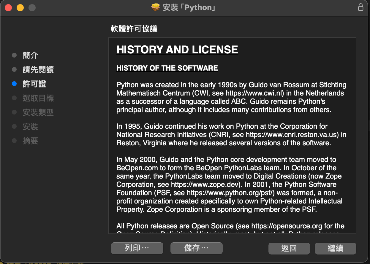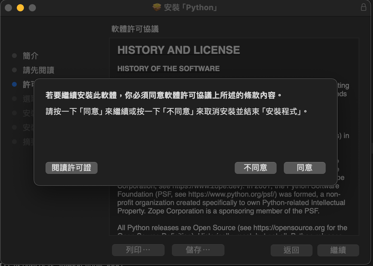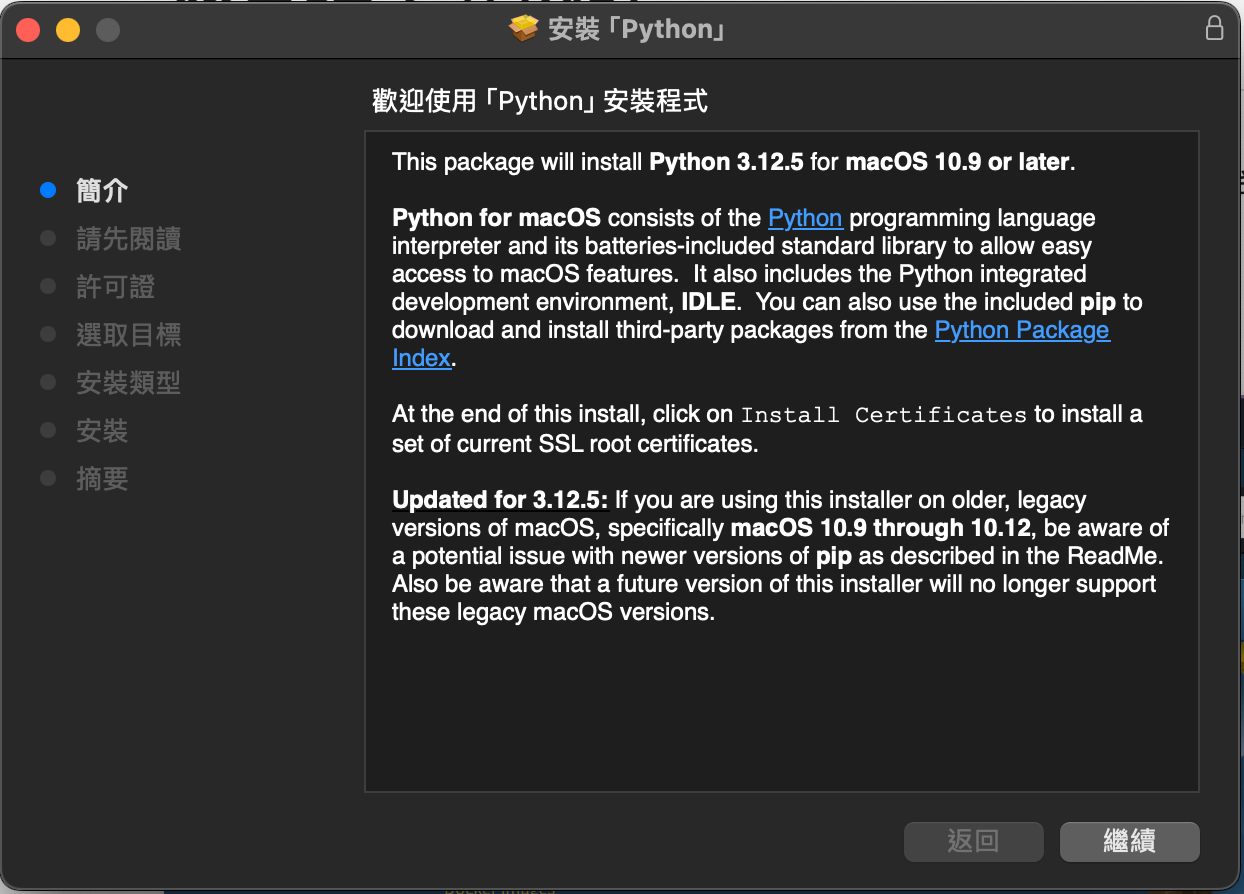 brew install python。 - 等待完成安裝後關閉終端機視窗。