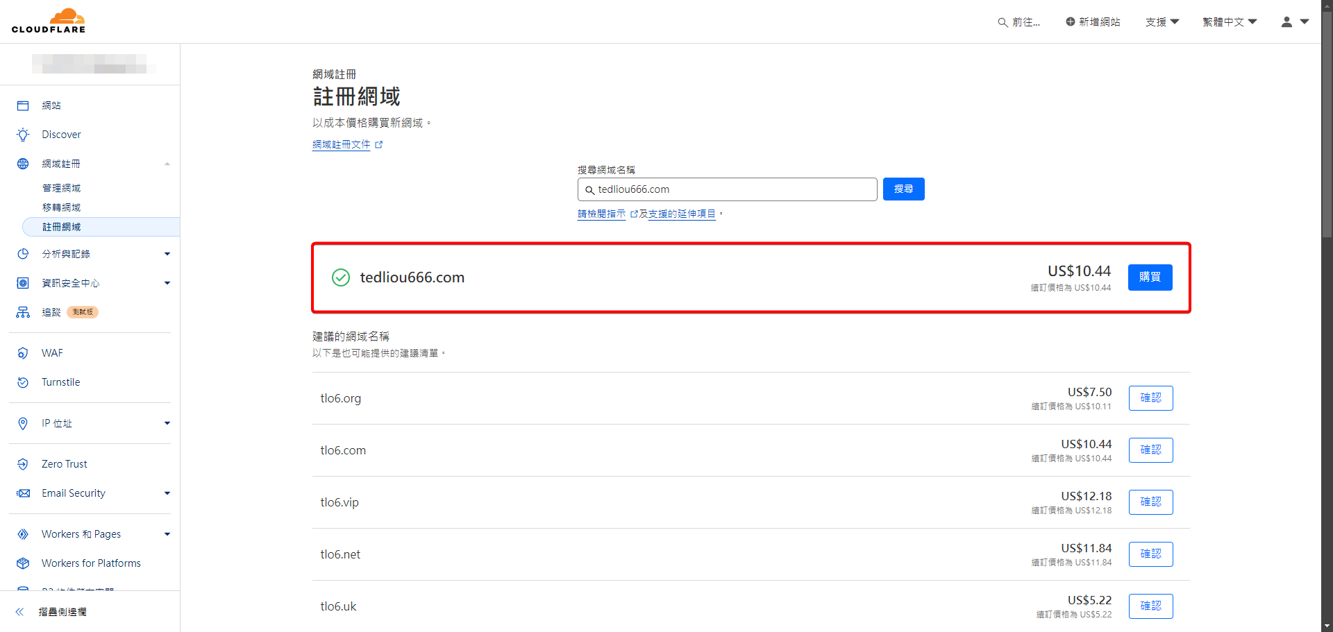 圖片來源:Cloudflare Registrar