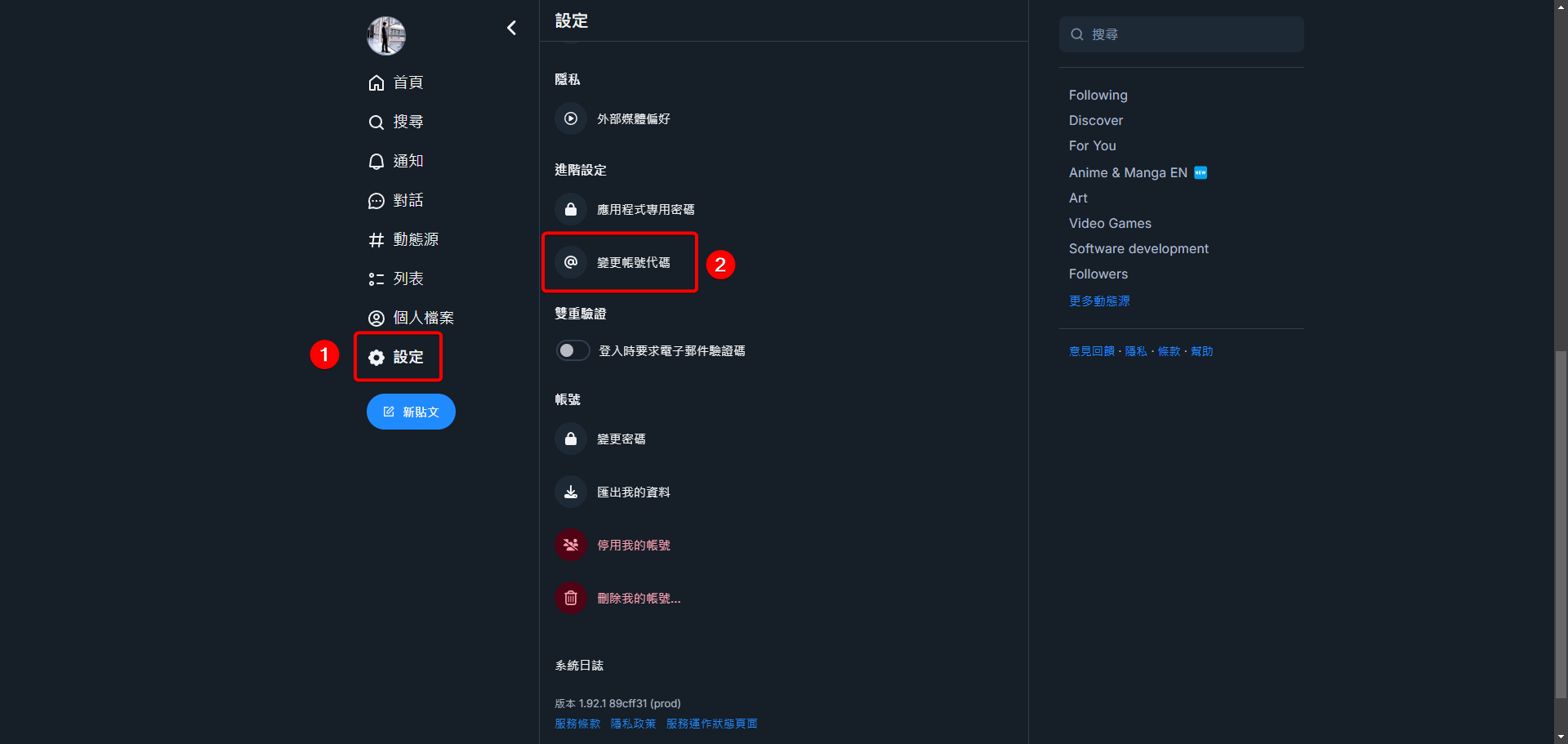 首先開啟 Bluesky,進入設定 > 變更帳號代碼。