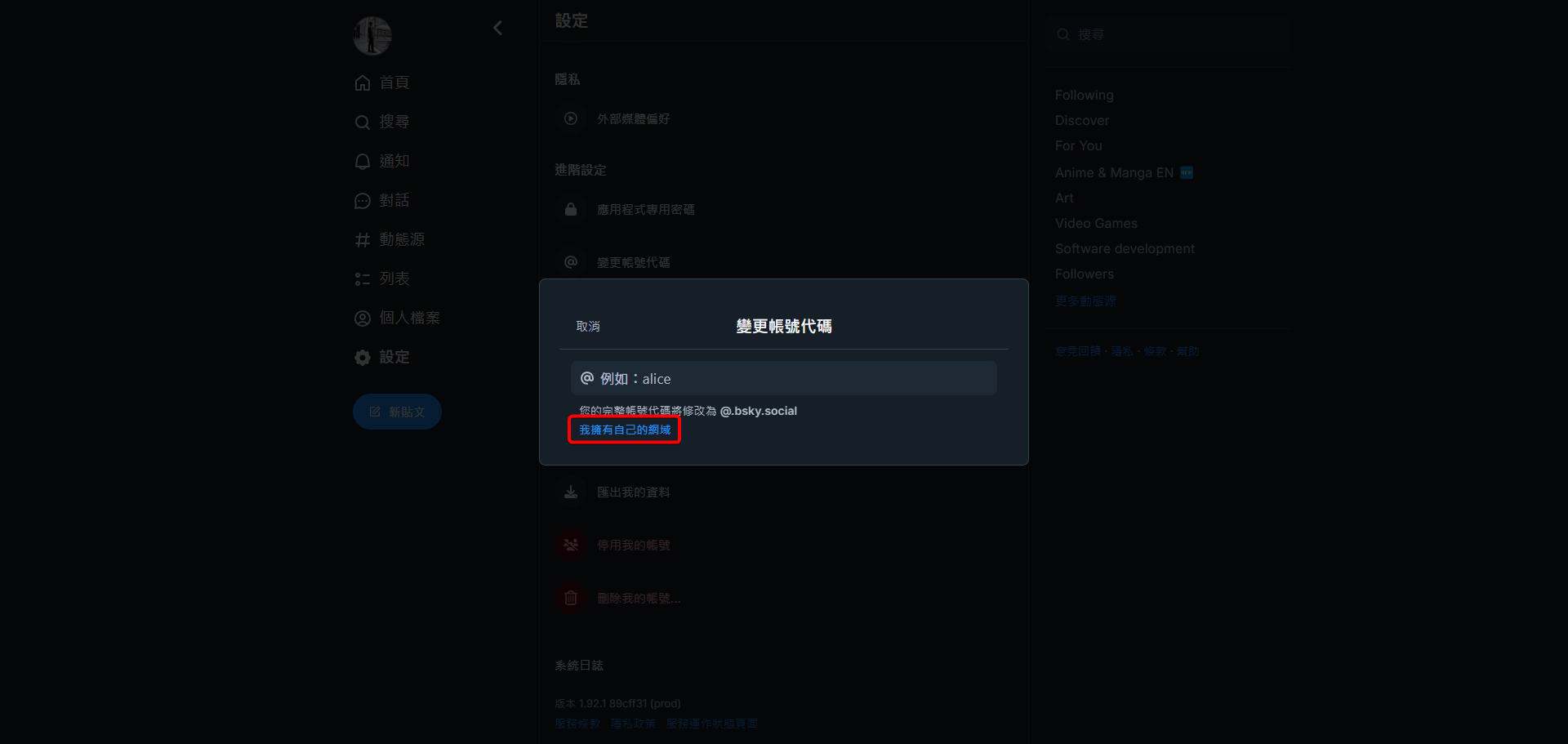 Bluesky 客制化帳號名稱
