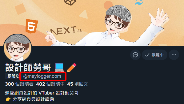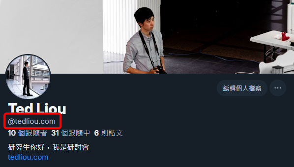 最後檢查看看自己的個人檔案,帳號名稱有沒有成功變成自己的網址了呢?追蹤我!@tedliou.com