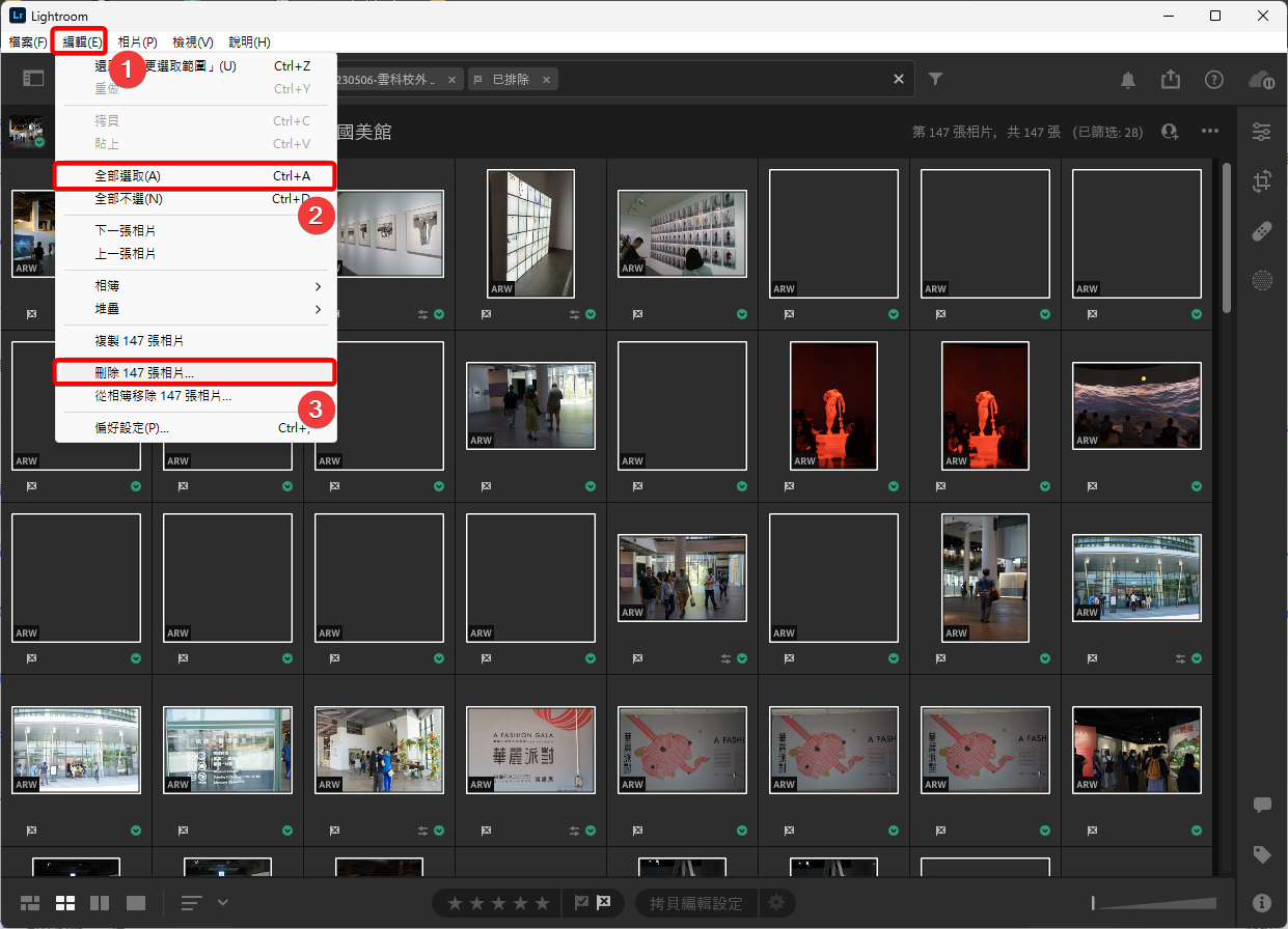 點擊編輯 > 刪除 X 張相片,即可完成刪除動作。