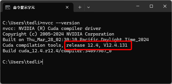 安裝完成後,在命令提示字元中輸入 nvcc --version 檢查版本是否正確。