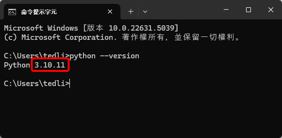 安裝完成後,在命令提示字元中輸入 python --version 檢查版本,如果出現「‘python’ 不是內部或外部命令、可執行的程式或批次檔。」,重開電腦通常能解決。如果一樣沒東西,那八成是環境變數沒設定。由於我要用 VS Code 建環境,可以繼續操作不管它,不影響運作。