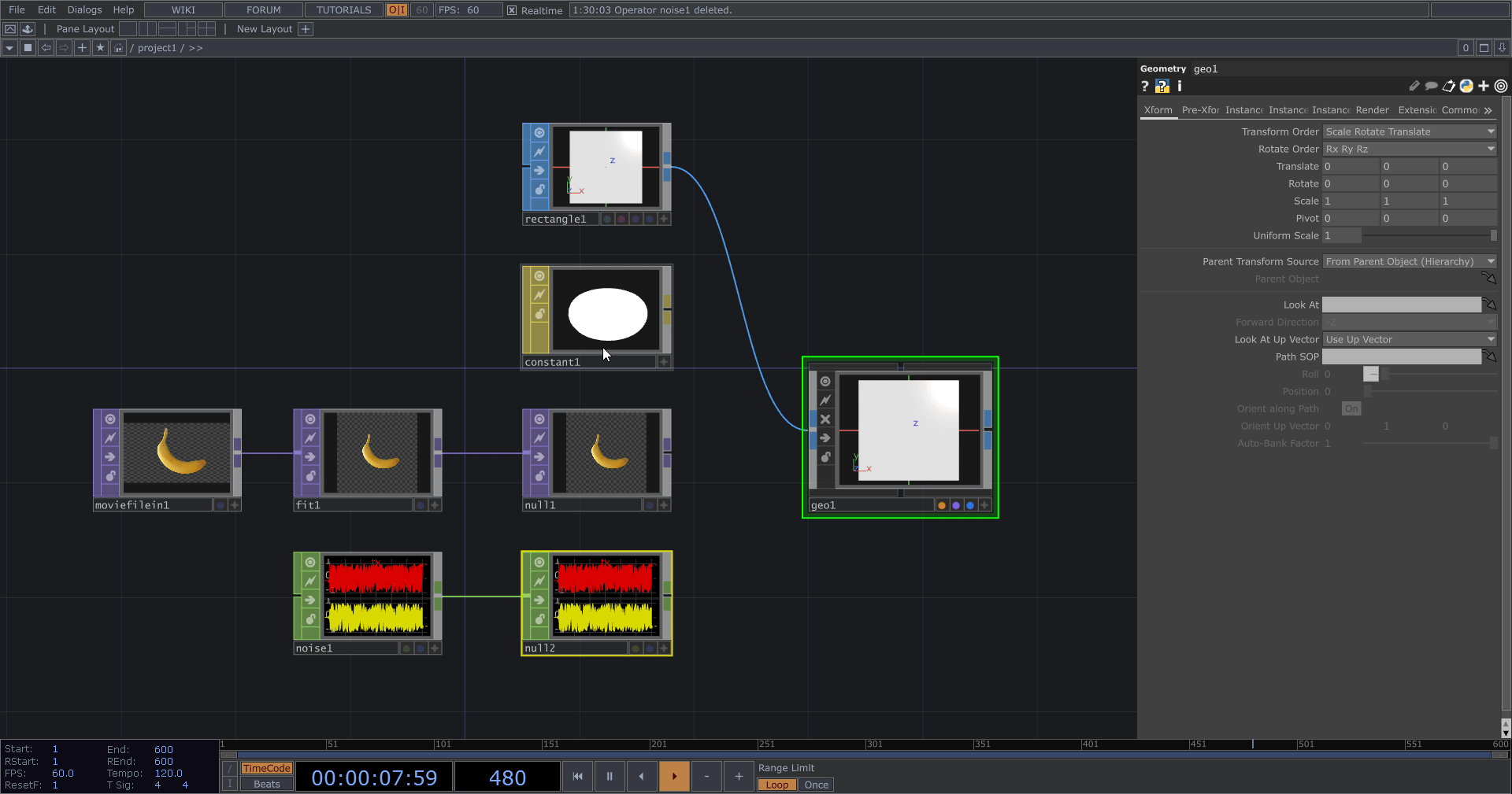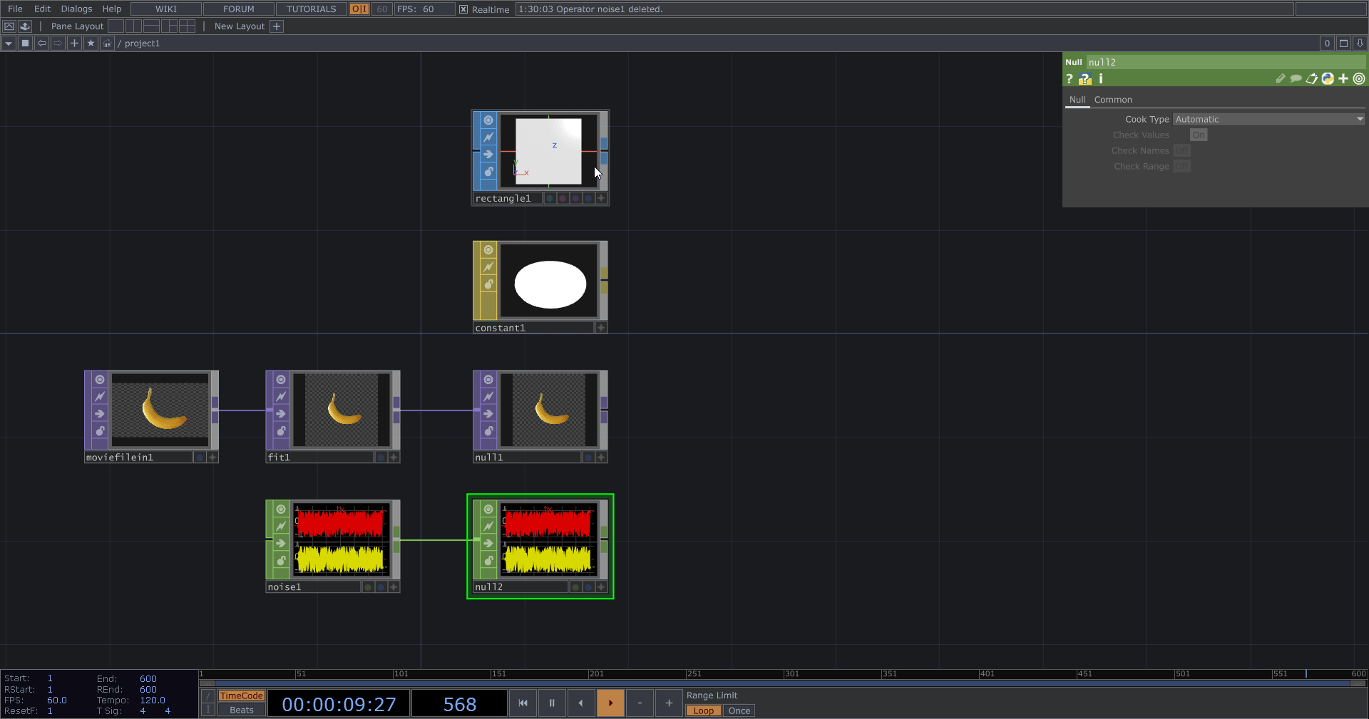 連接 CHOP > Null 分割功能,完成隨機座標生成模板。