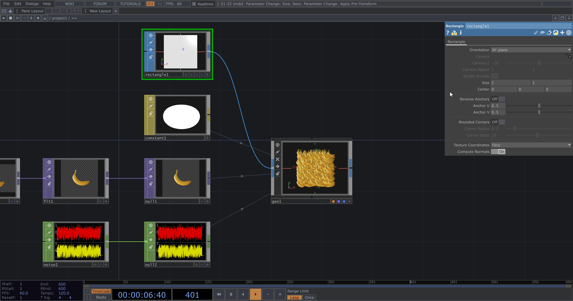 再檢查一下 Geometry,縮小 Rectangle 的 Size 後,香蕉的尺寸看起來正常多了,接下來要來進行渲染。