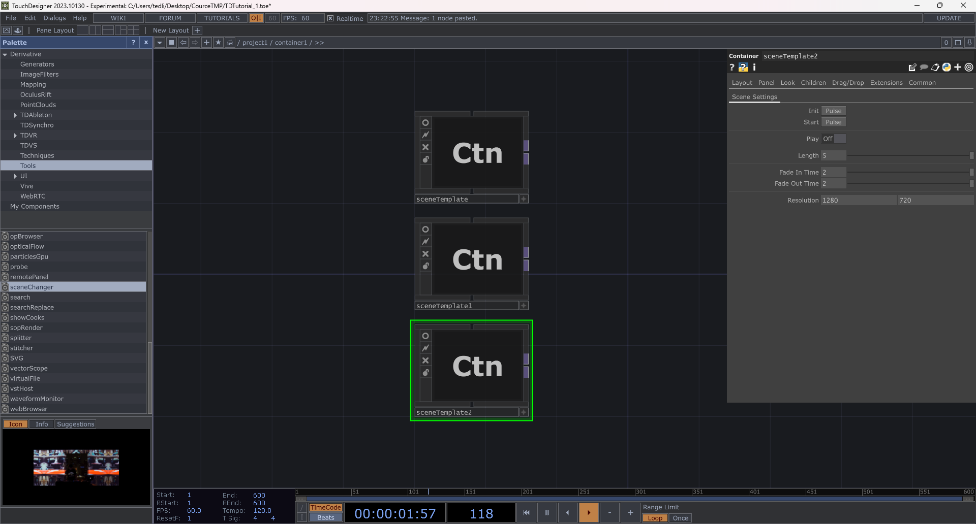 剪下剛才新增的 sceneTemplate,雙點擊進入 Container 後貼上。