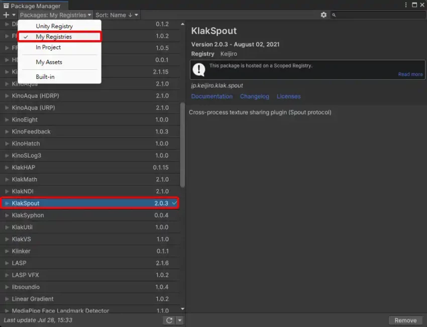 從列表中找到 KlakSpout,點擊 Install 進行安裝。