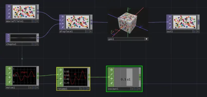 在預設內容的 Noise 後面連接 Rename CHOP 與 OSC Out CHOP。