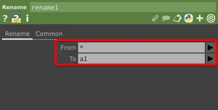 點擊 Rename CHOP,調整 To 的參數為 a1,會把 Noise 產生的 chan1 重新命名為 a1。