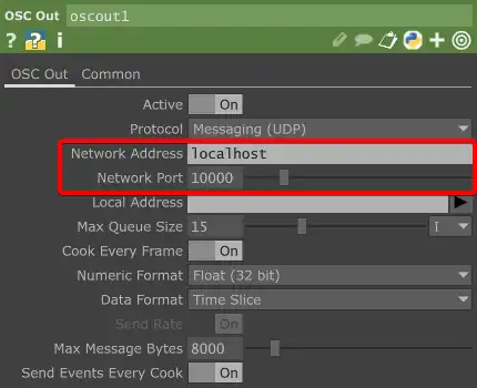 點擊 OSC Out CHOP,將 Network Address 與 Network Port 屬性記錄下來,將用於 Unity 的接收設定。