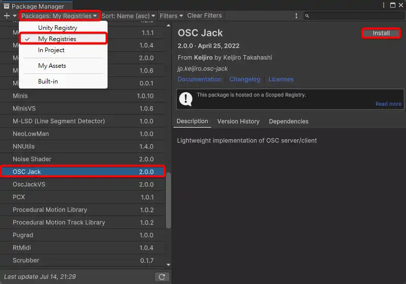從列表中找到 OSC Jack,點擊 Install 進行安裝。