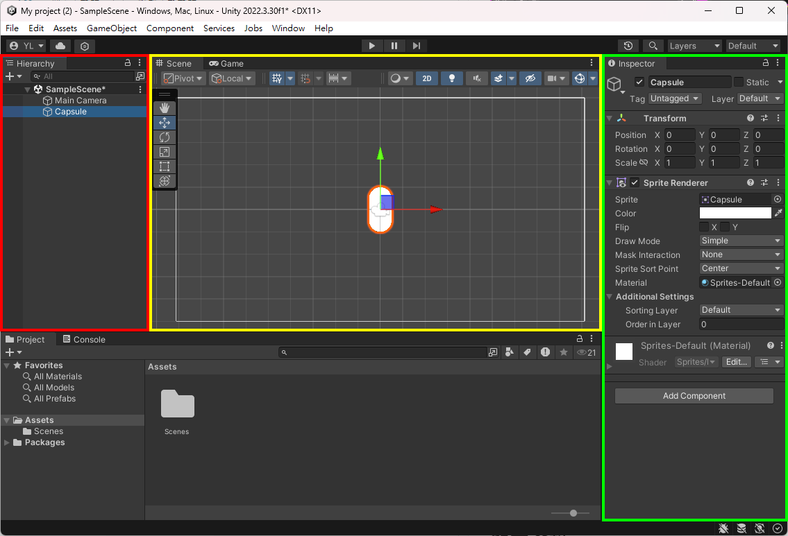 - Scene/Game:場景編輯和遊戲執行預覽。