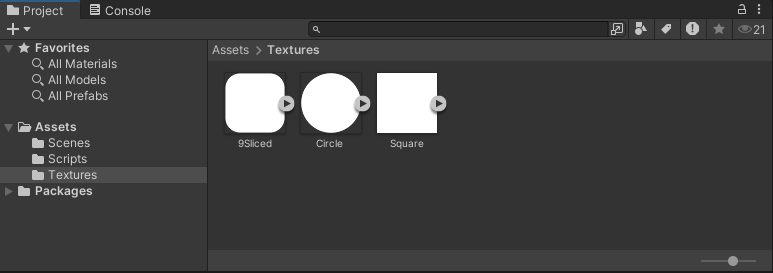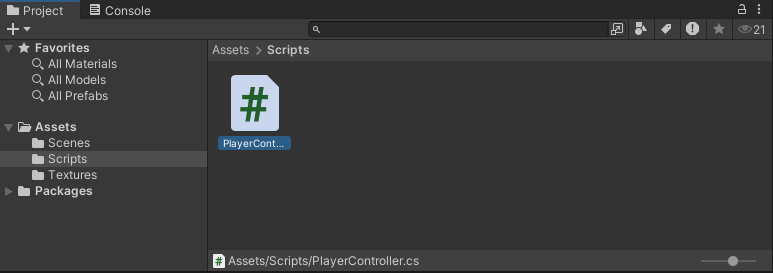 Project 會顯示 Unity 專案的 Assets 資料夾下的檔案,你可以自己建立資料夾、匯入美術、音樂素材或建立 C# 腳本等。