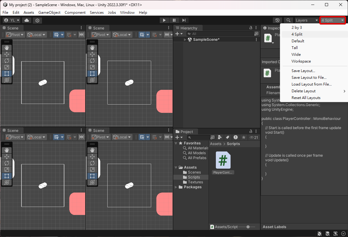 在 Unity 中,場景一直都是 3D 的,就算是開了 2D 專案,在 Scene 面板中仍然可以使用 3D 視角來進行編輯。