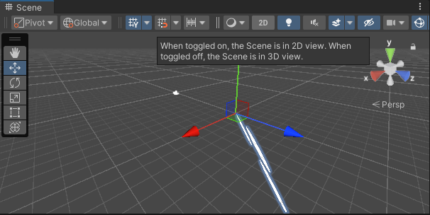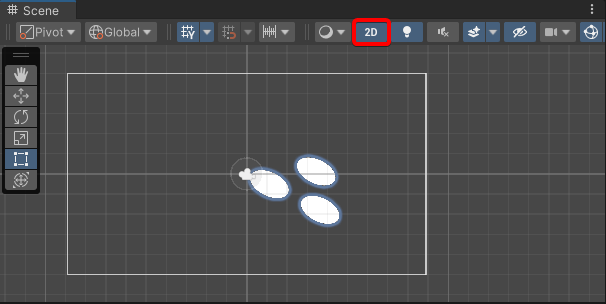 點擊 Scene 面板上方的 2D 按鈕即可切換視角。