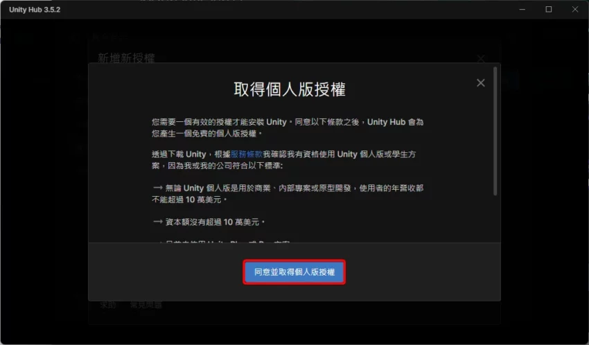 - 點擊 同意並取得個人版授權,點擊按鈕後程式會卡住數十秒為正常現象,請耐心等待。