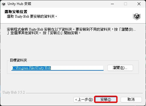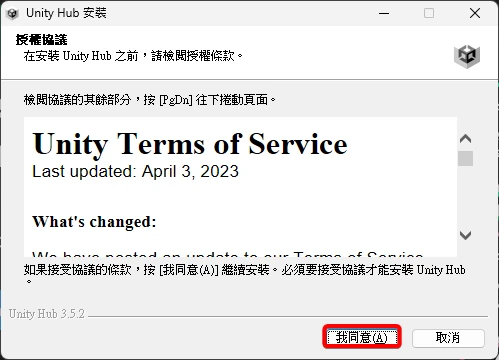 - 啟動 UnityHubSetup.exe 安裝程式。