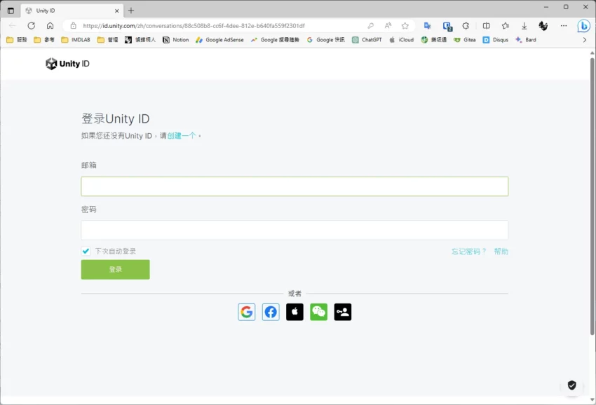 - 建立一支帳號或使用已有的 Unity 帳號或社群進行登入。