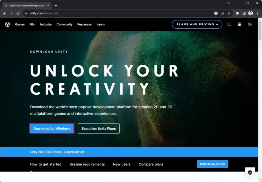 - 前往 Unity 官網,點擊 Download for Windows 下載 Unity Hub 安裝程式。Unity Hub 是管理專案、授權和編輯器的一個核心軟體。