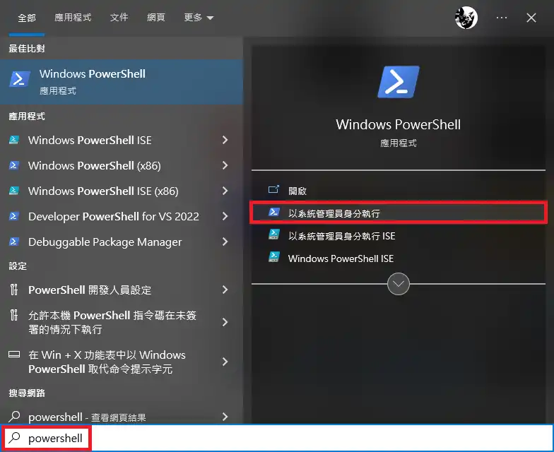 點擊開始,搜尋 PowerShell 並 …