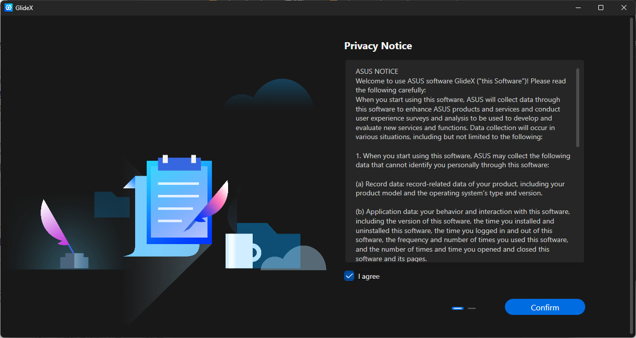 資料蒐集聲明也是如此,勾選 I agree 後點擊 Confirm。