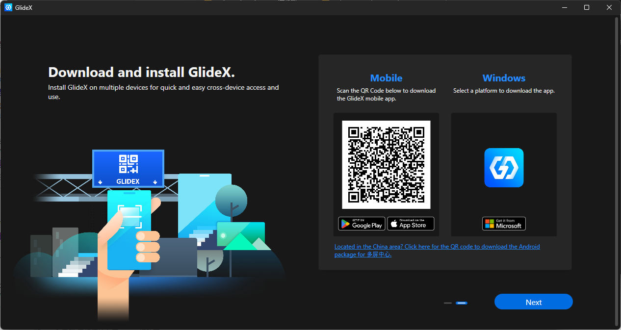 完成安裝後,直接啟動 GlideX,並點擊 Next。目前軟體只有英文版,可直接跟著本文操作即可。