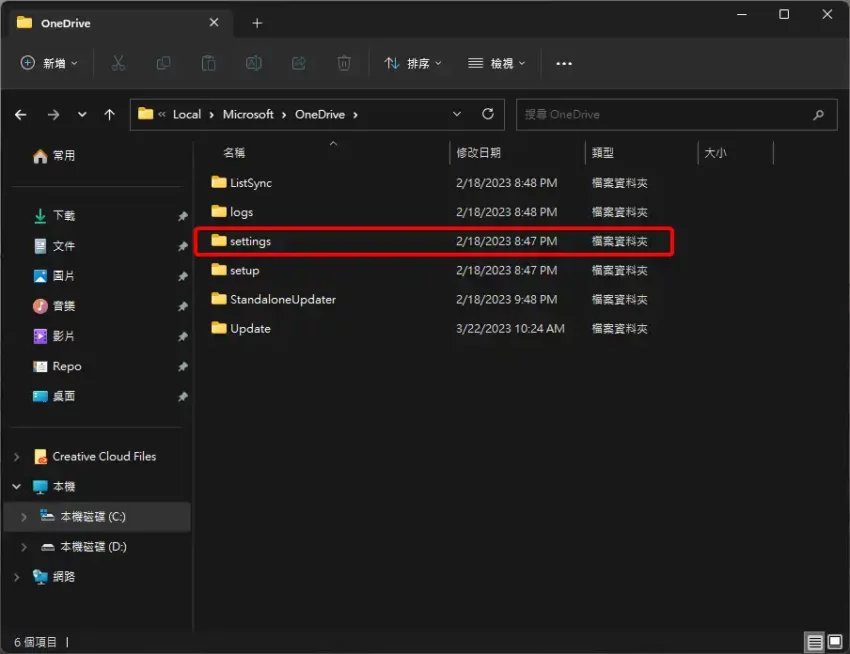 再刪除 AppData / Local / Microsoft / OneDrive / settings。