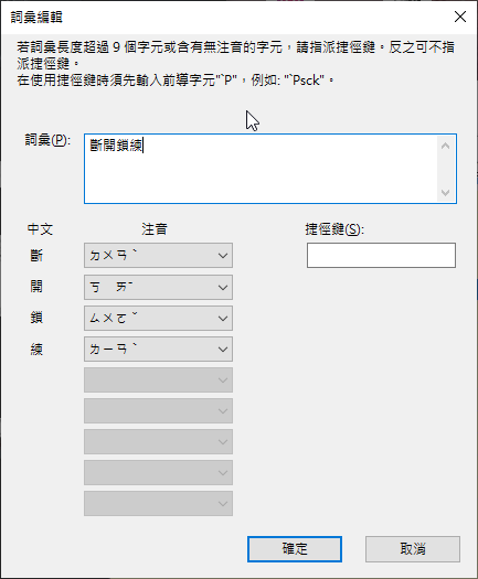 最近很無聊的在亂搞系統時才發現,原來微軟注音輸入法已經有內建使用者造詞功能,雖然還是沒辦法做到自動學習,但至少已經能讓我自行輸入常用的單詞,提高撰寫文件報告的效率,也避免掉因為不同輸入法造成的操作問題。